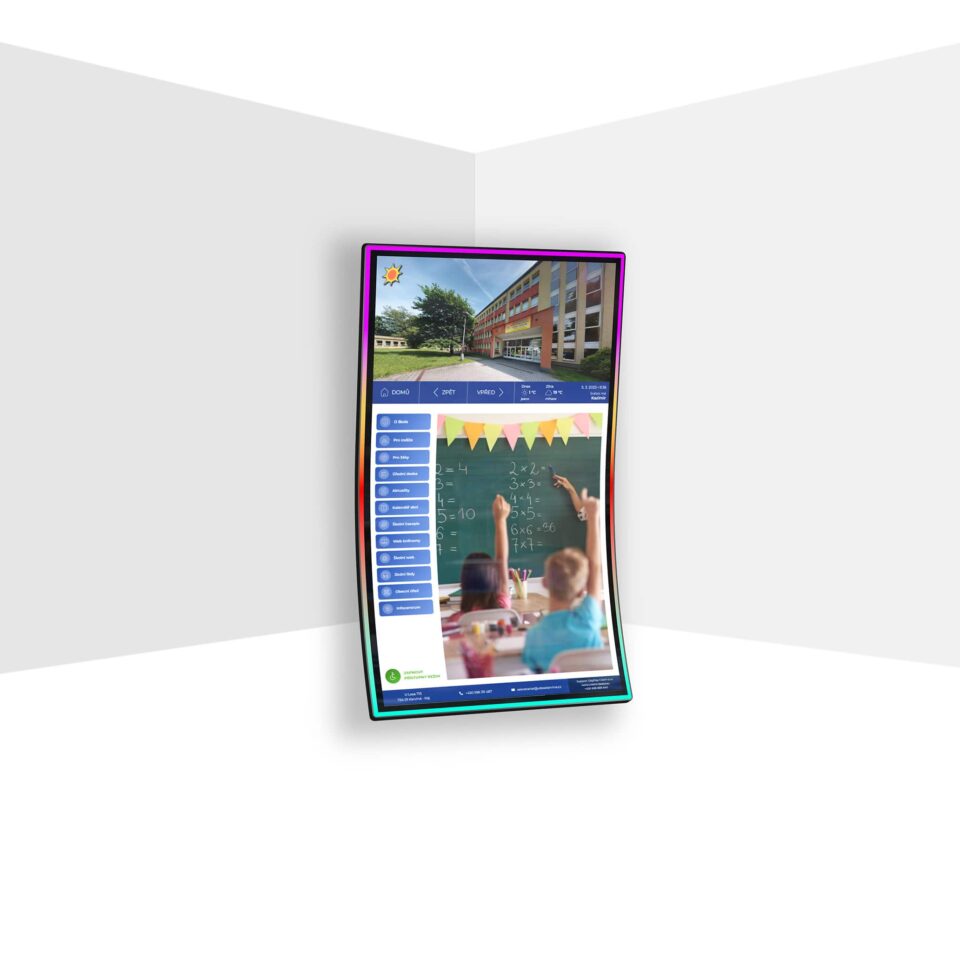 LightFrame je originální jednostranný zahnutý dotykový LCD panel navržený pro interaktivní prezentace v zábavním průmyslu, showroomy a atraktivní komerční instalace. Díky technologii IPS s LED podsvícením a vysokému rozlišení 4K (2160 × 3840) nabízí brilantní obraz s věrnými barvami a širokými pozorovacími úhly. K dispozici je ve velikostech 43” a 55” a podporuje multitouch ovládání, což umožňuje plynulé a intuitivní ovládání obsahu. Zařízení lze dodat jako All-in-One řešení nebo v kombinaci s microPC, pro snadnou integraci do různých systémů. Díky netradičnímu zahnutému designu LightFrame okamžitě přitáhne pozornost a nabízí nezaměnitelný vzhled, který jej odlišuje od běžných plochých displejů. Tento model není vybaven tvrzeným sklem.